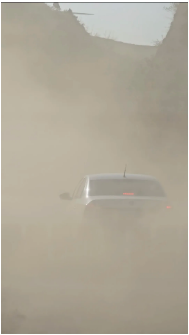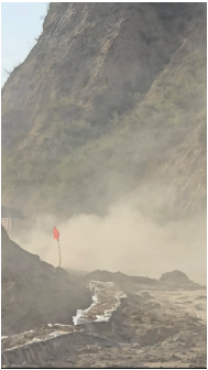 因為行駛的道路開(kāi)始從柏油路變成坎坷泥濘的土路,一路上顛簸崎嶇不說(shuō),中間有一段路程,更是黃沙漫天、塵土飛揚,能見(jiàn)度幾乎為“0”!車(chē)轍印剛壓出半尺深,轉眼就被山風(fēng)卷著(zhù)砂石填平,如果此時(shí)下車(chē)步行的話(huà),估計沒(méi)走幾步路,“膝蓋骨里都得灌進(jìn)二兩黃土”來(lái)!