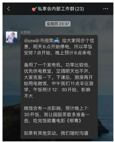 所以,當最后一批同學(xué)趕到時(shí),夜色已經(jīng)很深了。但或許誰(shuí)也不會(huì )想到,這場(chǎng)旅途帶給“弟子班”同學(xué)們的考驗還遠不止此,更恐怖的是接下來(lái)長(cháng)達16個(gè)多小時(shí)的停電!