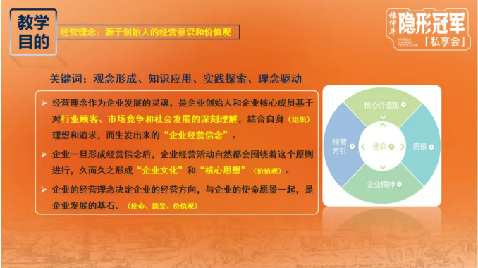 在《經(jīng)營(yíng)理念與企業(yè)成長(cháng)》課程交付中,樓老師特別選用他個(gè)人的持續成長(cháng)和雙童的發(fā)展作為教學(xué)案例,通過(guò)剖析他個(gè)人的思維認知轉變如何驅動(dòng)雙童經(jīng)營(yíng)理念的轉變,以及帶領(lǐng)企業(yè)一次次穿越周期、韌性成長(cháng)的故事,讓同學(xué)們更直觀(guān)地認識到:創(chuàng )始人的經(jīng)營(yíng)意識和價(jià)值觀(guān)是企業(yè)經(jīng)營(yíng)理念最直接來(lái)源。而經(jīng)營(yíng)理念是企業(yè)發(fā)展的靈魂,決定著(zhù)企業(yè)的經(jīng)營(yíng)方向。