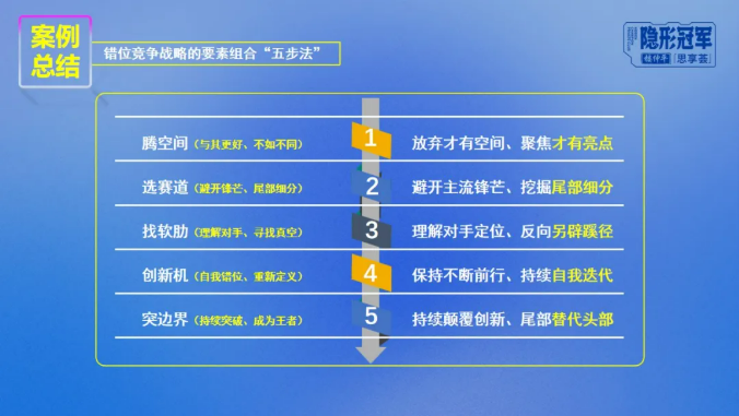 正如樓老師在第一天課程中所講的,任何一種有價(jià)值的戰略定位,都會(huì )引起他人的“爭相效仿”。只有不斷錯位、“一錯再錯”,企業(yè)才能持續領(lǐng)先!