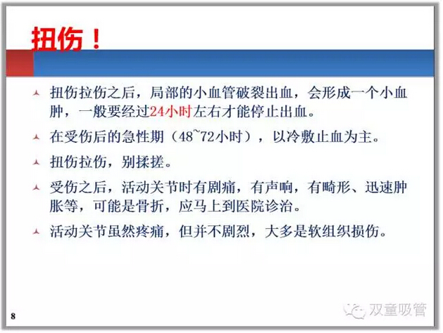 在運動(dòng)過(guò)程中,我們經(jīng)常會(huì )出現扭傷,外傷出血,骨折等狀況。遇到這些問(wèn)題時(shí),我們又該怎么辦呢?妞就把PPT干貨放上來(lái)和大家共享吧!