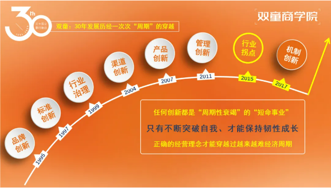 此外,他還強調了創(chuàng )新的時(shí)效性,以雙童一次次穿越周期的例子強調創(chuàng )新是一個(gè)不斷迭代的過(guò)程,隨著(zhù)時(shí)間和環(huán)境的變化,過(guò)去的創(chuàng )新可能會(huì )失效,因此需要不斷地尋找新的創(chuàng )新點(diǎn)。雙童自2017年嘗試機制創(chuàng )新,到現在已經(jīng)8年了,是時(shí)候再打破舒適區,重新出發(fā)!
