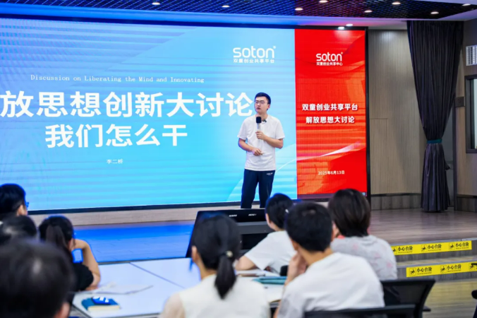 上月平臺董事會(huì )上,董事長(cháng)樓仲平發(fā)出了“解放思想”的信號,號召大家積極打開(kāi)創(chuàng )新思路。半個(gè)月以來(lái),各創(chuàng )業(yè)體已開(kāi)展了多輪解放思想主題內部討論,并在本次全員討論中核心創(chuàng )業(yè)體總經(jīng)理依次進(jìn)行分享交流。