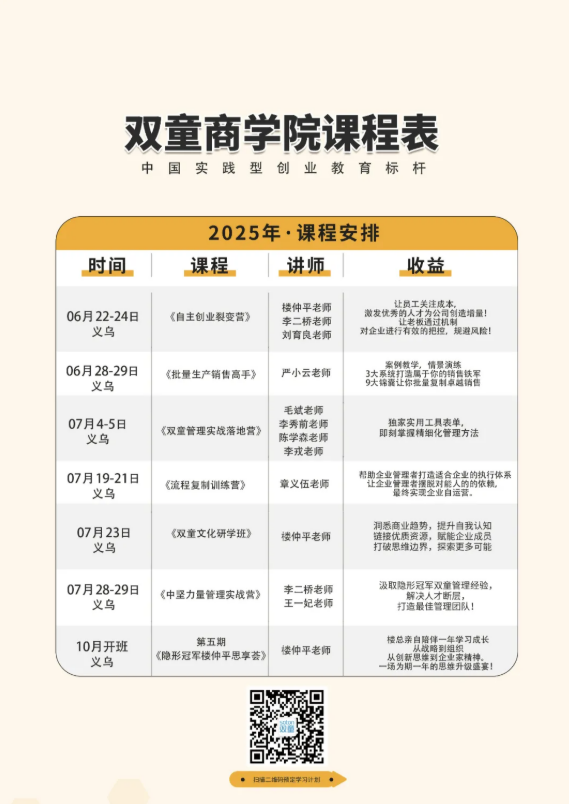 如果你也對“雙童”充滿(mǎn)好奇,也想賦能團隊共同成長(cháng),歡迎走進(jìn)7月23日【雙童文化研學(xué)班】,與上百位優(yōu)秀的創(chuàng )業(yè)者一起學(xué)習!少量名額,歡迎咨詢(xún)鎖定!