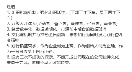 從燴道辦公區域墻壁上的核心價(jià)值觀(guān),到生產(chǎn)一線(xiàn)精準執行的管理細則,大家直觀(guān)感受到了“以?shī)^斗者為本”的理念如何滲透到企業(yè)肌理、融入日常運營(yíng);通過(guò)觀(guān)摩一線(xiàn)車(chē)間的操作與管理流程,研學(xué)標準化在提高生產(chǎn)效率、保障產(chǎn)品品質(zhì)中的重要作用。