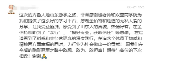 “弟子班”永不畢業(yè),持續成長(cháng)!6月20-21日,隱形冠軍樓仲平思享薈舉行山東校友會(huì )研學(xué)專(zhuān)場(chǎng),1-5期“弟子班”中的40多位同學(xué)一同成行。