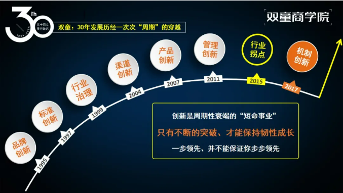 企業(yè)成長(cháng)的背后是創(chuàng )業(yè)者的持續成長(cháng),雙童能夠一次次成功穿越周期的背后,正是創(chuàng )始人樓仲平個(gè)人持續成長(cháng)、自我進(jìn)化、行知合一的結果!所以每次的分享中,他都將自己47年的持續成長(cháng)歷程作為第一篇章內容。