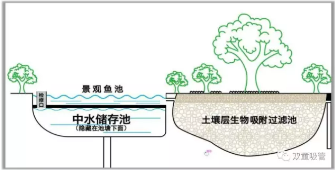 從結構上看,該景觀(guān)池采用分層式設計:上層為1米多深的生態(tài)觀(guān)賞區,供人觀(guān)賞與休憩;下層則是深達4.5米的中水儲水池,承擔著(zhù)廢水儲存與再利用的重任,默默履行著(zhù)水循環(huán)利用的重要使命。這種創(chuàng )新的雙層結構,既確保了景觀(guān)效果,又實(shí)現了水資源的最大化利用。