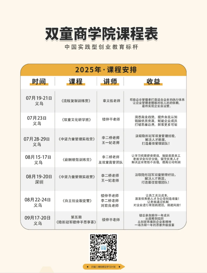 同時(shí),雙童也重視宿舍的安全管理,消防燈光巡檢點(diǎn)每天都設置打卡,要求相關(guān)人員每天巡查。雙童的兩個(gè)廠(chǎng)房都擁有著(zhù)24小時(shí)的安保,無(wú)論白天還是晚上,出入都需要刷卡,最大程度地保障員工的安全。正是因為我們事事都幫員工考慮到了,真正把員工的難題解決了,如此一來(lái),員工怎么可能不珍惜這份工作,怎么可能不給企業(yè)創(chuàng )造價(jià)值?這也是讓雙童持續31年,始終保持快速的發(fā)展的關(guān)鍵所在。如果你也對雙童的企業(yè)管理充滿(mǎn)好奇,也想賦能團隊共同成長(cháng),歡迎走進(jìn)7月23日【雙童文化研學(xué)班】,與上百位優(yōu)秀的創(chuàng )業(yè)者一起學(xué)習!少量名額,歡迎咨詢(xún)鎖定!