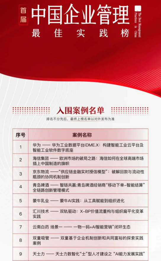 首屆「中國企業(yè)管理最佳實(shí)踐榜」由“中國管理模式50人+論壇”與《財經(jīng)》雜志聯(lián)合發(fā)起,旨在結合當前時(shí)代下最受關(guān)注的管理命題,尤其將側重關(guān)注在“AI+管理”方面的具有引領(lǐng)性和開(kāi)拓性的實(shí)踐,通過(guò)對基于場(chǎng)景的中國企業(yè)管理最佳實(shí)踐的挖掘和推廣,為企業(yè)推薦可借鑒、復制的解決方案,幫助企業(yè)少走彎路,實(shí)現價(jià)值增長(cháng),推動(dòng)具有“技術(shù)理性與人文內核”的中國方案走向世界。