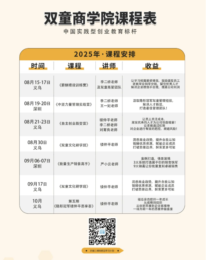 ●百位創(chuàng )業(yè)者的標桿學(xué)習之旅!組團加入《雙童文化研學(xué)班》,深度研學(xué)創(chuàng )業(yè)者與企業(yè)的“韌性成長(cháng)”!