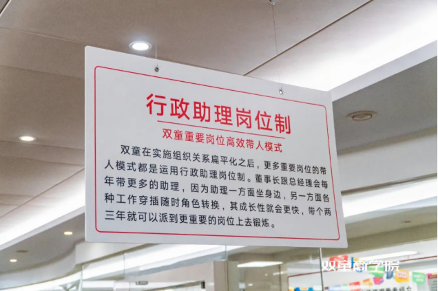 在“雙童”,助理崗位并非簡(jiǎn)單的“助手”,而是企業(yè)重要崗位的“接班人”和“創(chuàng )業(yè)體孵化器”。新的團隊怎么誕生?由誰(shuí)領(lǐng)軍?試錯需要成本,“雙童”憑什么相信他們?這些問(wèn)題的答案,自然是因為平日里點(diǎn)點(diǎn)滴滴的相處。