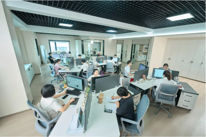 最中間的是創(chuàng )始人樓仲平的工位,旁邊的是總經(jīng)理李二橋工位,而總經(jīng)理助理的位子就緊挨在一起。集體辦公的形式,就意味著(zhù)所有員工都能平等交流與通力協(xié)作,節省溝通時(shí)間和成本,也方便培養人才,給企業(yè)發(fā)展的軸承續上了潤滑油,更易于開(kāi)放事物性討論與跨部門(mén)協(xié)調溝通工作。