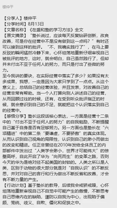 雙童塾生們也積極響應樓總的號召,每天晚上學(xué)習群里熱鬧非凡。每個(gè)人在自己學(xué)習后,還能通過(guò)其他同修的分享來(lái)拓寬視角。許多人表示在碎片化的時(shí)間里難得有機會(huì )可以拿起書(shū)本學(xué)習,很高興能總結過(guò)往、共同規劃,一起成長(cháng)。