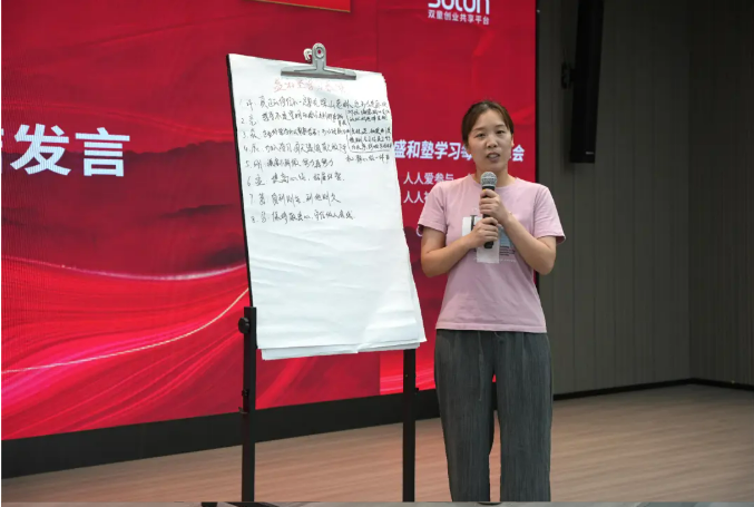 樓總則推薦大家,通過(guò)閱讀電子版精華內容,隨時(shí)利用碎片化時(shí)間進(jìn)行總結歸納,語(yǔ)音輸入感言也可以讓表達更加真情實(shí)感。作為雙童成長(cháng)力最強的人,總經(jīng)理李二橋也在現場(chǎng)分享了自己持續多年的學(xué)習心得。第一點(diǎn)就是堅持,對學(xué)習這件事保持熱情,第二點(diǎn)是通過(guò)學(xué)習重點(diǎn)綱要,精讀探討。他鼓舞大家互相督促、互相鼓勵,讓整個(gè)團隊更加凝聚,共同進(jìn)步。