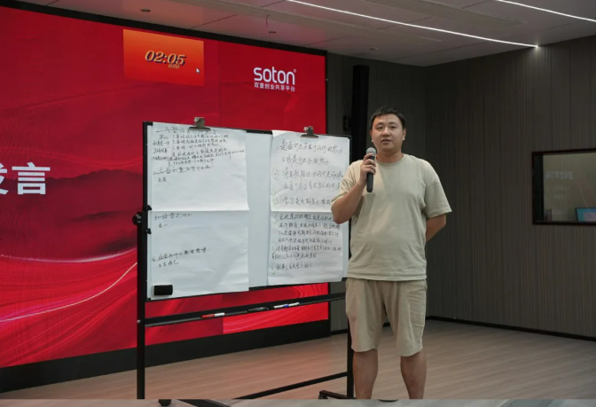 在悠揚輕松的音樂(lè )中,小組互動(dòng)環(huán)節開(kāi)啟。十分鐘內大家用白紙板寫(xiě)下學(xué)習感悟,提煉總結,并由每個(gè)小組派代表總結發(fā)言。雖說(shuō)這只是第一周的學(xué)習總結,但在短短幾天時(shí)間里,大家都收獲滿(mǎn)滿(mǎn),又在交流互動(dòng)中不知不覺(jué)復盤(pán)了一遍,加深了理解。