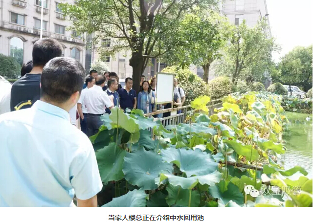 下午,當家人樓總帶大家參觀(guān)起了“雙童”廠(chǎng)區。一行人先是來(lái)到了我們的中水回用池,樓總給眾人講解了我們“雙童”的廢水循環(huán)利用的系統和原理,之后又參觀(guān)了雨水收集處、垃圾分類(lèi)站、九樓菜園等地。眾人對“雙童”這種生態(tài)循環(huán)、為社會(huì )節約資源的做法點(diǎn)了一個(gè)大大的贊。