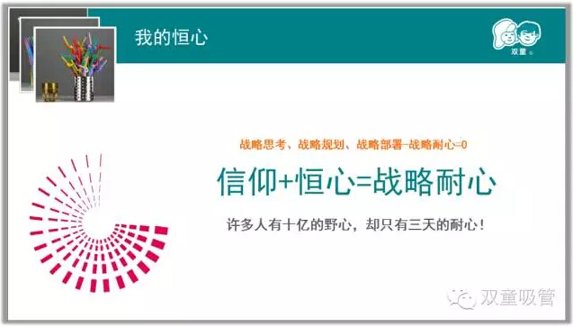 其次在分享過(guò)程中當家人樓總也談到:做企業(yè),要善于把自己的行業(yè)細分再細分,然后在這個(gè)細分的行業(yè)里做到NO.1。在這個(gè)過(guò)程中,要把自己看小,才能把舞臺做大!