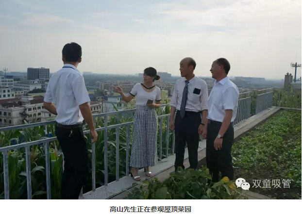 移步九樓菜園,高山先生立即被菜園子里的蔬菜吸引了,在工廠(chǎng)還有這么一片靜地,實(shí)在另人贊嘆!聽(tīng)到“空中菜園”有近800平方米的,每個(gè)種植區的土層均有1米2深,高山先生更是贊不絕口!