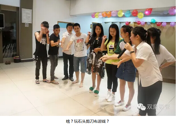 你以為這就結束了?還沒(méi)呢!接下來(lái)是重頭戲——“杯中傳情” 。員工們被分為兩隊,在相同的時(shí)間內用嘴叼杯子傳遞水,途中可不能用嘴哦!游戲好不好玩,看照片你就知道啦!