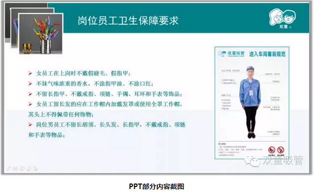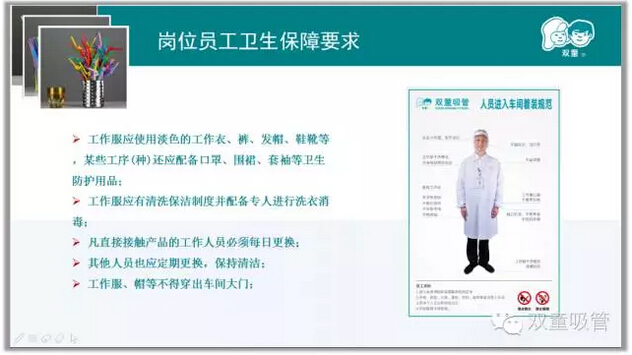 生產(chǎn)吸管對環(huán)境有著(zhù)很高的要求,因此對崗位員工的衛生要求也更加嚴謹。比如進(jìn)入車(chē)間的著(zhù)裝要求,員工洗手消毒的流程、上下班前對崗位進(jìn)行自檢等方面都有著(zhù)明確的規定。只有好的環(huán)境才能生產(chǎn)出更好的產(chǎn)品。