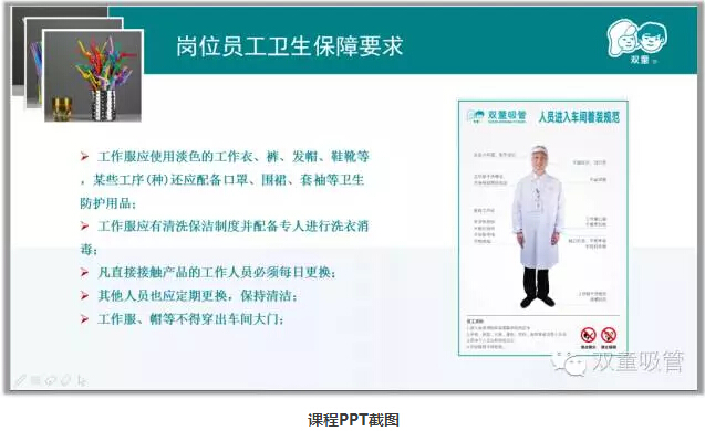 這本培訓教材出爐后,我們的各級領(lǐng)導們也專(zhuān)門(mén)對員工進(jìn)行了培訓和講解!比如,生產(chǎn)廠(chǎng)長(cháng)李秀前為大家講解成型工崗位上衛生管理、操作規范和安全管理等知識;設備科科長(cháng)姚長(cháng)東為大家講解設備的維護和保養規范;質(zhì)檢部經(jīng)理陳學(xué)森為大家講解了吸管基礎知識、吸管技術(shù)指標、外觀(guān)質(zhì)量要求等知識。