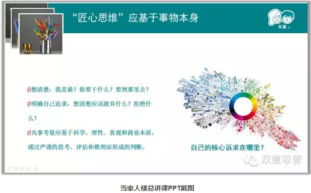 最后,當家人樓總回歸商業(yè)本質(zhì),和大家說(shuō)起了匠心本源。“雙童”的節能降耗措施、讓員工住三星級寢室,持續不斷地提升員工生活品質(zhì),都是圍繞匠心本源,基于企業(yè)長(cháng)遠的發(fā)展,改變員工意識形態(tài)提升產(chǎn)品品質(zhì)而改變企業(yè),這些都是圍繞著(zhù)商業(yè)本質(zhì)真真正正地把產(chǎn)品做好,產(chǎn)品好了,企業(yè)的一切關(guān)系也就順了,企業(yè)才會(huì )真正地變好,所謂利他最后一定會(huì )利已!