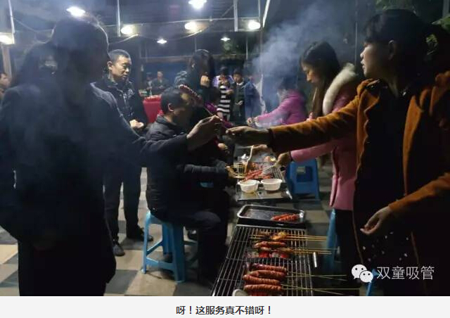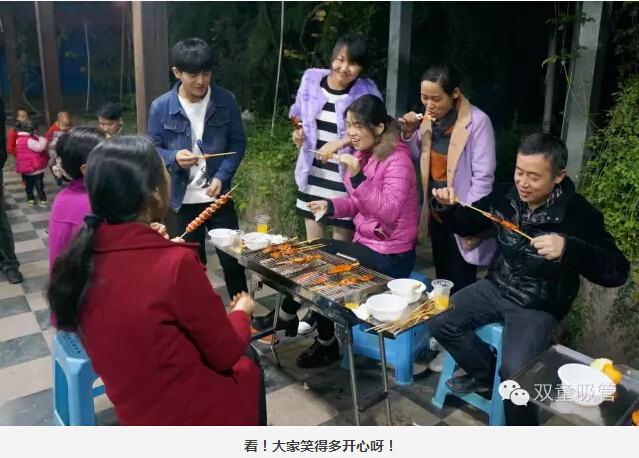 大家圍坐在烤爐前,領(lǐng)導們爭當“燒烤小販”,為壽星們進(jìn)行服務(wù)。圍著(zhù)一桌好吃的則是“雙童”的一線(xiàn)員工,喝著(zhù)美酒吃著(zhù)主管們烤的肉串,瞧大家笑得多開(kāi)心!往往員工手上的還沒(méi)吃完,這邊領(lǐng)導們就已經(jīng)笑瞇瞇地把新烤好的肉串奉上了,吃都來(lái)不及,這是什么節奏!