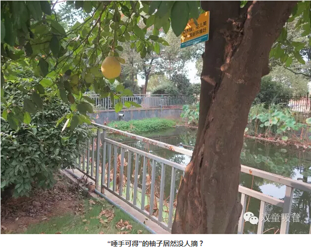 已經(jīng)轉黃的大柚子高高低低的掛滿(mǎn)了枝頭,和青綠的葉子應和著(zhù),煞是好看呢!從樹(shù)下往上看,像不像星星掛滿(mǎn)天的趕腳?吸管妞還發(fā)現,有幾個(gè)柚子長(cháng)得非常的低,真的可以用“唾手可得”來(lái)形容,可是……竟然沒(méi)有吃貨來(lái)摘?這是怎么回事呢?