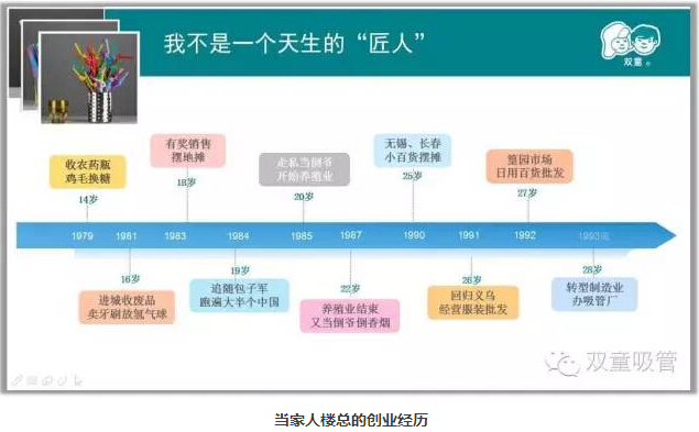 1994年4月,偶然的機會(huì )讓我再次選擇“一根小吸管”作為重新創(chuàng )業(yè)的起步,無(wú)數次的創(chuàng )業(yè)失敗使我在經(jīng)營(yíng)“雙童”之后選擇了更多的堅守和專(zhuān)注,從而逐漸拋棄了一夜暴富的急功近利,減少了唯利是圖的投機心理,深刻認知到創(chuàng )辦企業(yè)的意義所在,始終關(guān)注事物本身,全身心投入把事情做到更好。