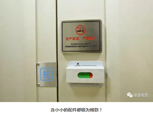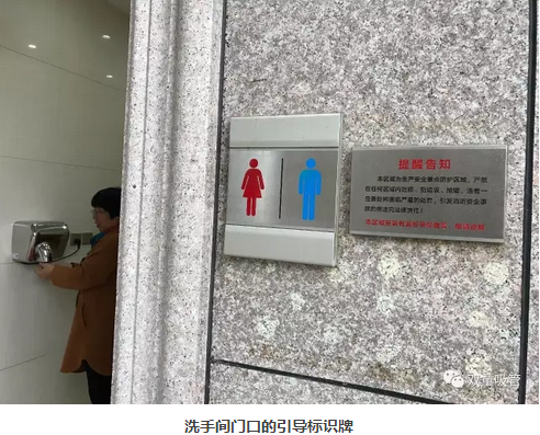 除此之外,衛生間內還有許多提示引導的標示牌,每個(gè)配件都極為精致!每扇門(mén)上都會(huì )有“生產(chǎn)區域,嚴禁吸煙”的標識,每個(gè)蹲位后面都有“便后請沖水、素養高低往往體現在關(guān)上門(mén)自己獨處之時(shí)”的溫馨提示,引導員工提升素質(zhì)。偷偷爆個(gè)料,所有標識牌都是由當家人樓總自己設計的呢!