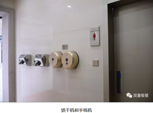 進(jìn)入衛生間前,員工可以在手紙區取紙巾,無(wú)論是哪個(gè)衛生間,都配備了手紙。不僅如此,我們還配備了專(zhuān)業(yè)的烘干機,讓員工們可以烘干洗干凈的濕手。