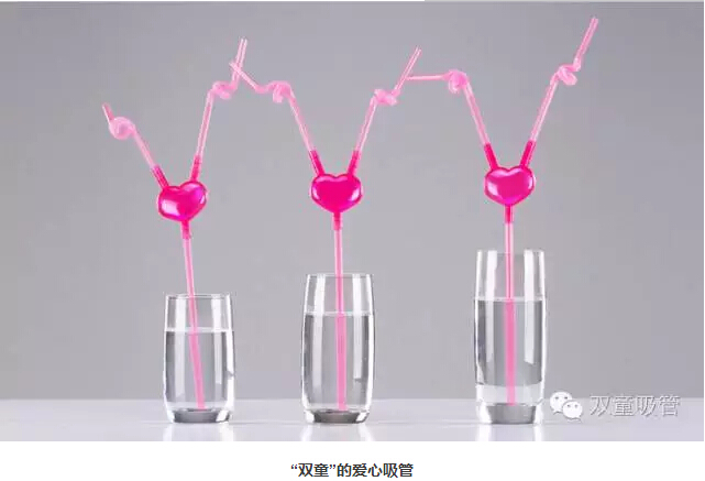 吸管可以是玩具,比如動(dòng)物造型的卡通吸管、內嵌風(fēng)輪會(huì )不停旋轉的風(fēng)車(chē)吸管;可以是婚慶道具,“愛(ài)心吸管”上方有一顆粉紅色的“心”,“心”的兩邊弧上各有一個(gè)小吸管,心形腔體里則裝有一個(gè)小小的水流止回閥和過(guò)濾裝置。這樣的“愛(ài)心吸管”在婚宴等場(chǎng)合中非常應景,零售價(jià)每根高達8元左右……