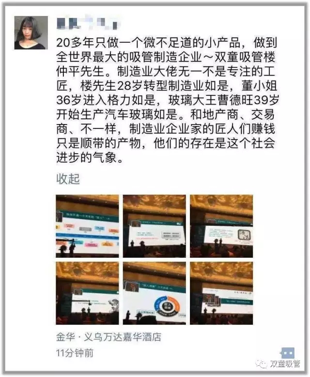 盡管課程的分享時(shí)間不長(cháng),但樓總的“匠人思維”受到了眾多創(chuàng )業(yè)者的好評,大家紛紛贊嘆樓總20多年堅持把一根吸管做到極致的精神!吸管妞也希望,樓總的“匠心”能夠鼓勵和影響到更多的人成為一個(gè)個(gè)“匠人”!