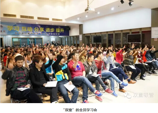 “雙童”一直倡導建設學(xué)習型企業(yè),營(yíng)造學(xué)習氛圍,每周召開(kāi)2次全體員工的學(xué)習會(huì ),分批次分部門(mén)開(kāi)展班組部門(mén)學(xué)習會(huì ),通過(guò)企業(yè)文化書(shū)籍、意識形態(tài)、制度培訓、技能培訓等各個(gè)方面,對員工開(kāi)展學(xué)習培訓。無(wú)論是掃地阿姨還是看門(mén)叔叔,都必須參加全員學(xué)習會(huì ),感受學(xué)習氛圍!