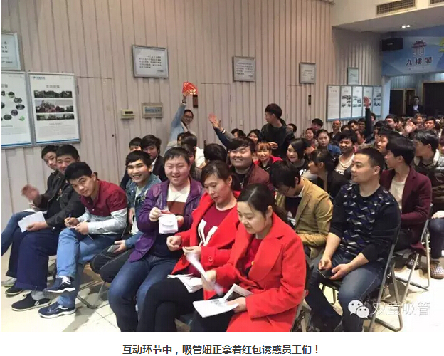 除此之外,我們的學(xué)習會(huì )上還有一大特色——發(fā)紅包!“雙童”每年硬性投資不少于50萬(wàn)元到學(xué)習會(huì )上,對每節課的講師和主持人發(fā)放講師和主持人紅包,對每節課的互動(dòng)環(huán)節發(fā)放互動(dòng)紅包,對每個(gè)月的班組學(xué)習競賽優(yōu)秀小組發(fā)放學(xué)習獎勵禮物等。通過(guò)這樣的激勵方式,員工的學(xué)習熱情提高啦,“雙童”的學(xué)習會(huì )迄今為止已經(jīng)舉辦了170期,大家說(shuō)是不是很棒呢!