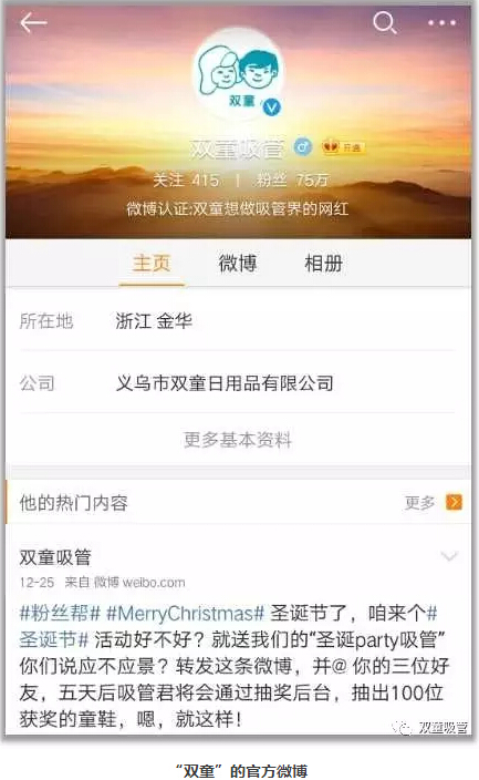 在信息化應用上,受當家人樓總的影響,“雙童”一直走在中小企業(yè)的前沿。早在新浪微博剛開(kāi)放之初,我們就開(kāi)始了新媒體的應用宣傳,除了微博,還開(kāi)辟了微信進(jìn)行傳播,通過(guò)“講故事”的方式傳播“雙童”文化,同時(shí)命名了“吸管妞”、“吸管君”這些擬人化的稱(chēng)呼,建立了“雙童”粉絲社群,拉近了與粉絲的距離!