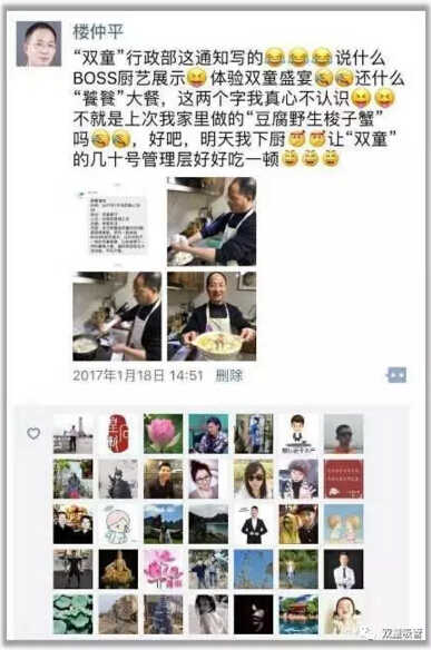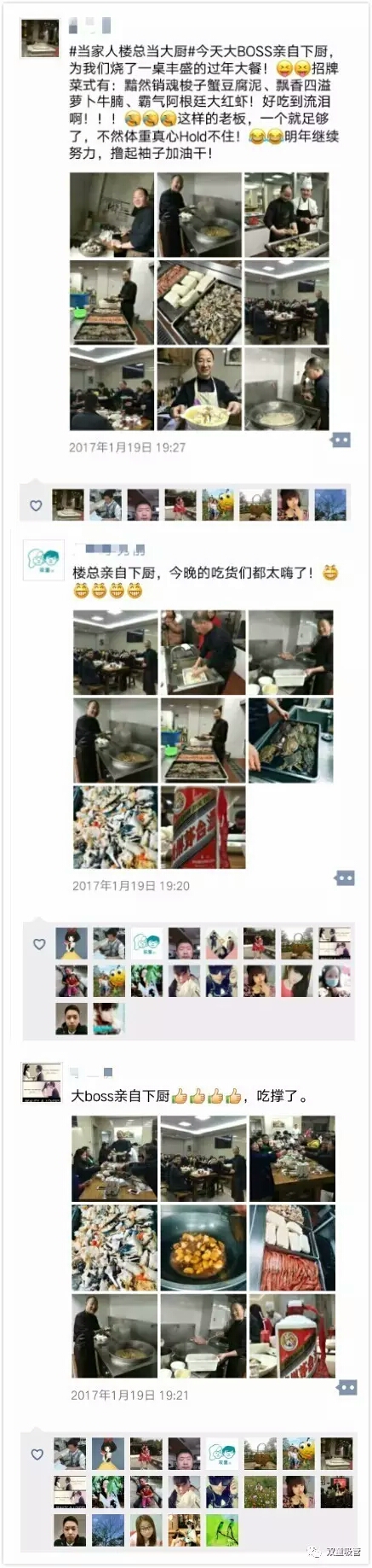 前兩天,吸管妞推送了“雙童”員工全體大聚餐的微信,朋友圈里一片“羨慕嫉妒恨”的喊聲!而前晚,當家人樓總更是自告奮勇,要為我們所有管理層員工們燒一頓可口的大餐!下面請大家接好自己的口水,接受又一波美食的誘惑吧!