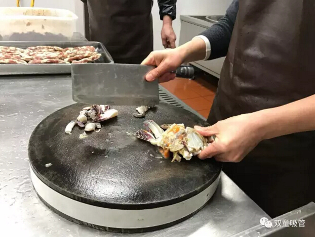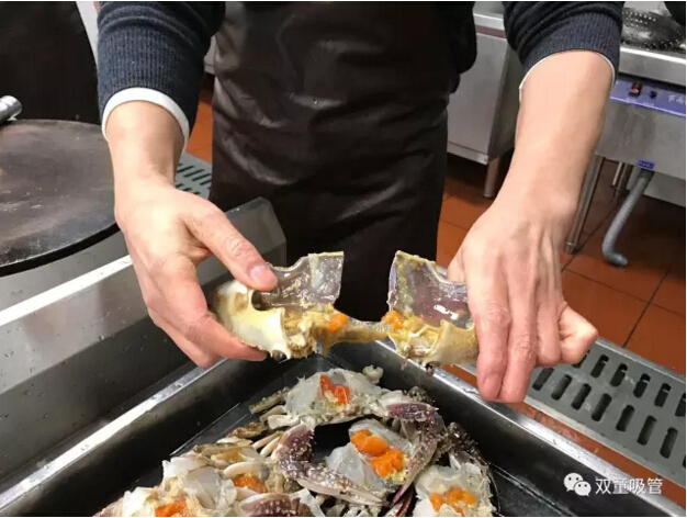 十五、蟹殼切分兩半,切分過(guò)程中的膏體流失盡量收集,不要遺棄。