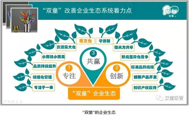 首先,樓總分享了企業(yè)經(jīng)營(yíng)中的商業(yè)本質(zhì),商業(yè)在本質(zhì)上就像“生物依賴(lài)于環(huán)境”,直接或間接地依賴(lài)客觀(guān)上存在的社會(huì )、組織和個(gè)體當中,形成相互依存、彼此共存的“利益共同體”。所以沒(méi)有一個(gè)企業(yè)是可以“孤立”生存的,“雙童”的發(fā)展也以改善企業(yè)生態(tài)為著(zhù)力點(diǎn)!