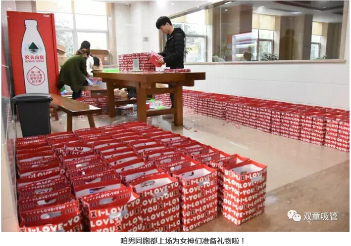 一套套紅彤彤的禮物套裝,男同胞們就是想拿,也不好意思呀!哈哈,看我們的女神們排著(zhù)隊高興的樣子,別急別急,留一套給吸管妞哈!