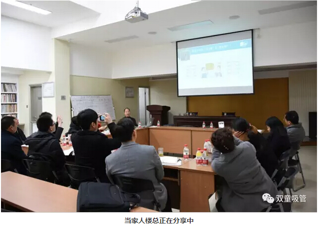 后來(lái),大家又參觀(guān)了行政辦公室、九樓菜園等地,最后,大家來(lái)到九樓閣與樓總進(jìn)行深入交流,互動(dòng)提問(wèn)。首先,當家人樓總向大家闡述了“家文化”在“雙童”的應用及實(shí)踐效益。