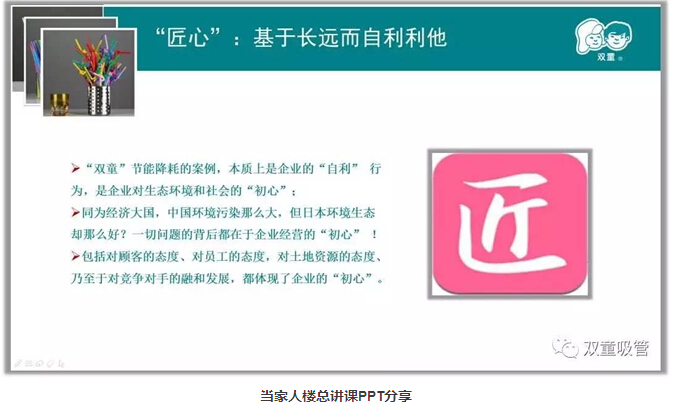 當家人樓總答:“太多企業(yè)選擇在規模上不斷攀比,結果攤子越鋪越大,負債越來(lái)越高,盈利越來(lái)越少,壓力越來(lái)越大。其實(shí)企業(yè)未必要一直做加法,可以適當的做減法。2005年“雙童”就出臺了第一個(gè)五年發(fā)展規劃,其中就提到了專(zhuān)注發(fā)展,不是立下雄心壯志,而是“做減法”,等到企業(yè)發(fā)展到一定的時(shí)候,才會(huì )順應市場(chǎng)做加法。所以不要嫌自己走得太慢,走的慢才可深入積累做更長(cháng)!其實(shí)“慢”就是“快”。