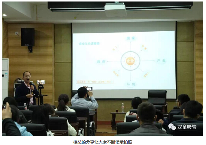 課程開(kāi)始后,當家人樓總介紹了自身的創(chuàng )業(yè)經(jīng)歷,在不斷失敗的教訓中,他選擇沉下心來(lái)專(zhuān)注做好一根吸管!樓總也通過(guò)自身的經(jīng)歷告訴學(xué)生們不要一直想著(zhù)失敗是成功之母,要想著(zhù)如何成功,好好認知為什么成功,不斷地總結、探索、認知,這是創(chuàng )業(yè)者創(chuàng )業(yè)很重要的一點(diǎn)!
