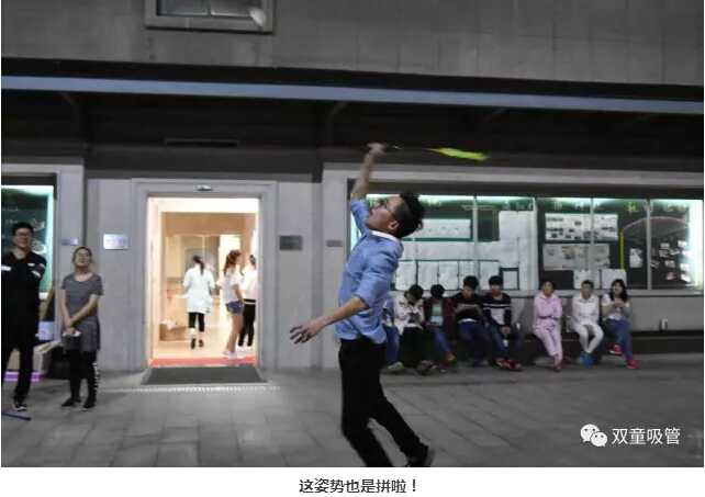 隨著(zhù)羽毛球的上下起落,現場(chǎng)的觀(guān)眾們比選手還緊張呢!男生給女生加油,女生為男生吶喊,連“雙童”寶貝都加入了“啦啦隊”,加油聲一陣蓋過(guò)一陣,現場(chǎng)氣氛可真是熱鬧呢!不少社員們都說(shuō)現在的社團活動(dòng)是越來(lái)越有意思啦!