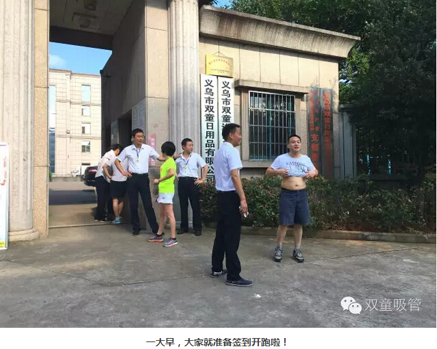 近期,在我們”雙童“內部可是掀起了一股“晨跑風(fēng)”,原來(lái)“雙童”的運動(dòng)周來(lái)啦!每天清晨,原本應該陸陸續續到辦公室上班的童鞋們早就穿好了運動(dòng)鞋,活力滿(mǎn)滿(mǎn)地出現在門(mén)衛處簽到,三三兩兩地繞著(zhù)廠(chǎng)區跑起步來(lái),下面妞就帶大家去現場(chǎng)看看吧!