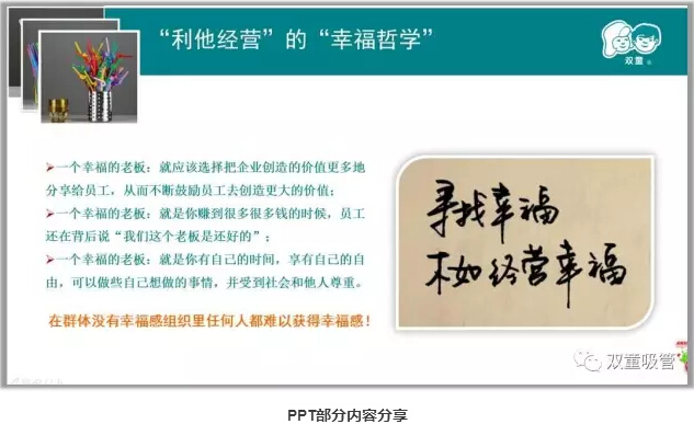 接下來(lái),“雙童”樓仲平重點(diǎn)和大家分享了“利他經(jīng)營(yíng)”的哲學(xué),“利他經(jīng)營(yíng)”應該關(guān)注于事物本身,唯有聚焦才會(huì )精彩!