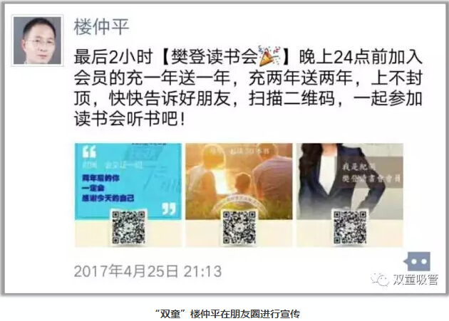 對此,“雙童”樓仲平表示,他非常高興可以影響這么多好友加入讀書(shū)會(huì ),因為正面影響他人是一件非常神圣的事情,一年投入365元,就可以學(xué)習到各類(lèi)經(jīng)典好書(shū),不僅開(kāi)闊了自己的視野,還提升了自身的認知水平,甚至有可能會(huì )改變自己的命運!