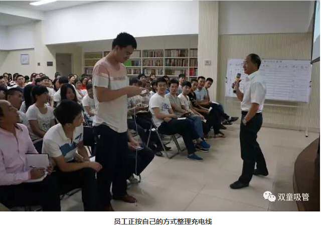 在學(xué)習會(huì )開(kāi)場(chǎng)前,“雙童”樓仲平現場(chǎng)邀請了員工整理蘋(píng)果電腦充電線(xiàn),結果員工認真的繞了好幾次也沒(méi)達標。原來(lái),整理充電線(xiàn)雖然沒(méi)有什么技術(shù)含量,但單憑細節來(lái)說(shuō),我們隨手整理的往往容易散亂開(kāi)來(lái),而按照標準流程進(jìn)行操作整理,關(guān)注到每一個(gè)細節時(shí),充電線(xiàn)就不會(huì )散!這個(gè)小互動(dòng)也引導員工們認知到無(wú)論做什么事情都應該關(guān)注細節,認知細節的重要性!