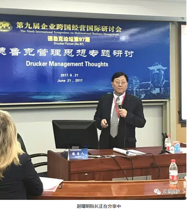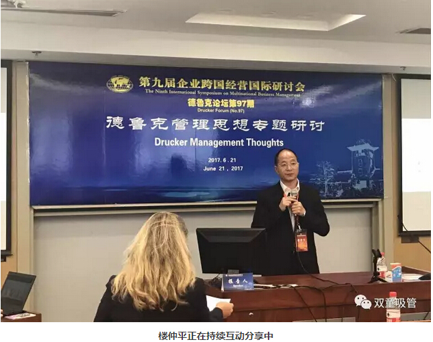 6月21日,樓仲平受邀參加由南京大學(xué)商學(xué)院主辦的跨國經(jīng)營(yíng)國際論壇——德魯克管理思想專(zhuān)題研討,和南京大學(xué)商學(xué)院名譽(yù)院長(cháng)趙曙明教授、美國德魯克管理學(xué)院校友關(guān)系助理主任 Shaheen PLUNIER女士同臺做主題分享!